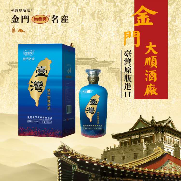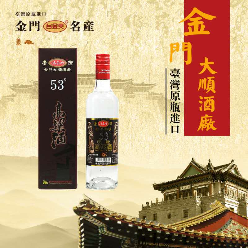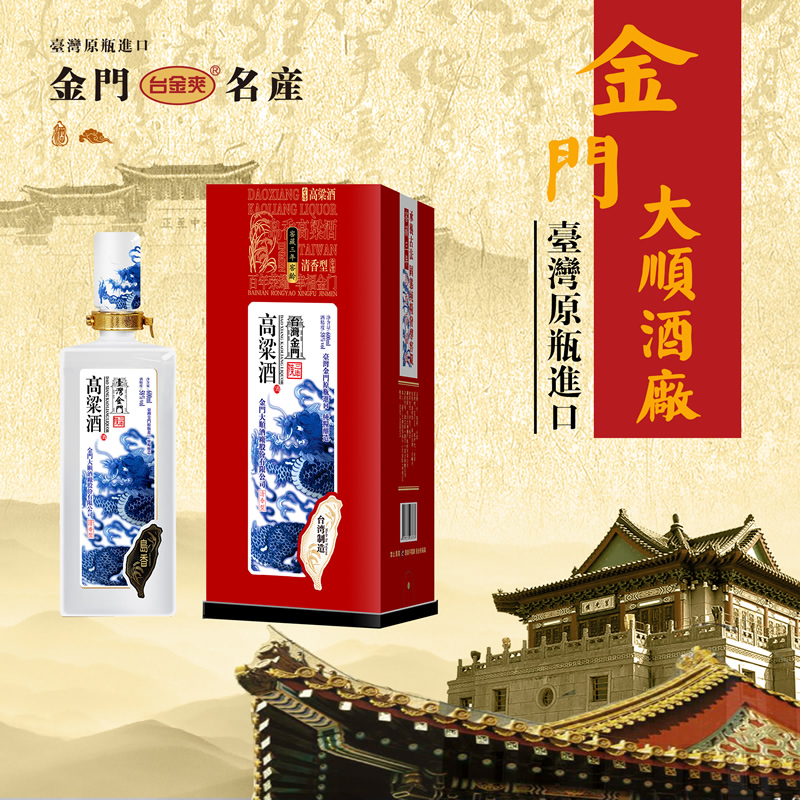 金門大順酒廠,座落于金門北緯24.5度,地處海隅,濱大陸,得天獨厚的地理,使它擁有絕佳的水質、空氣、氣候及原料的四大天然釀酒條件。金門大順酒廠的高粱酒釀造是利用金門特產『旱地高粱』、引用當?shù)厮|甘甜的泉水、金門潔凈的空氣與氣候條件,并承襲傳統(tǒng)古法之釀酒技術,加上獨家的釀酒專業(yè)技術經驗【三離二鍋一翻】的發(fā)酵釀酒工藝,經掐頭去尾后入庫,去蕪存菁。而造就出金門大順酒廠的高粱酒特色「清澈透明、質地純凈、芳香濃郁」之一系列高粱酒。金門大順酒廠制酒承襲著金門得天獨厚的地理環(huán)境,加上三代流傳之古法醇釀技技術,結合經驗與現(xiàn)代化生產,釀出風味獨特,香、醇、甘、冽的【臺島】【臺金爽】【牛樟芝高粱酒】【龍騰鳳舞】【紅雙十】【陳高吶】【臺灣小酒】等多樣系列產品。真實原味、清香散發(fā),甘冽醇厚的絕佳風味。